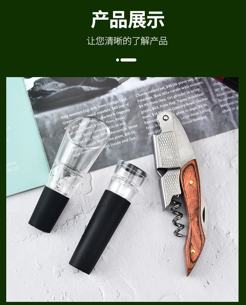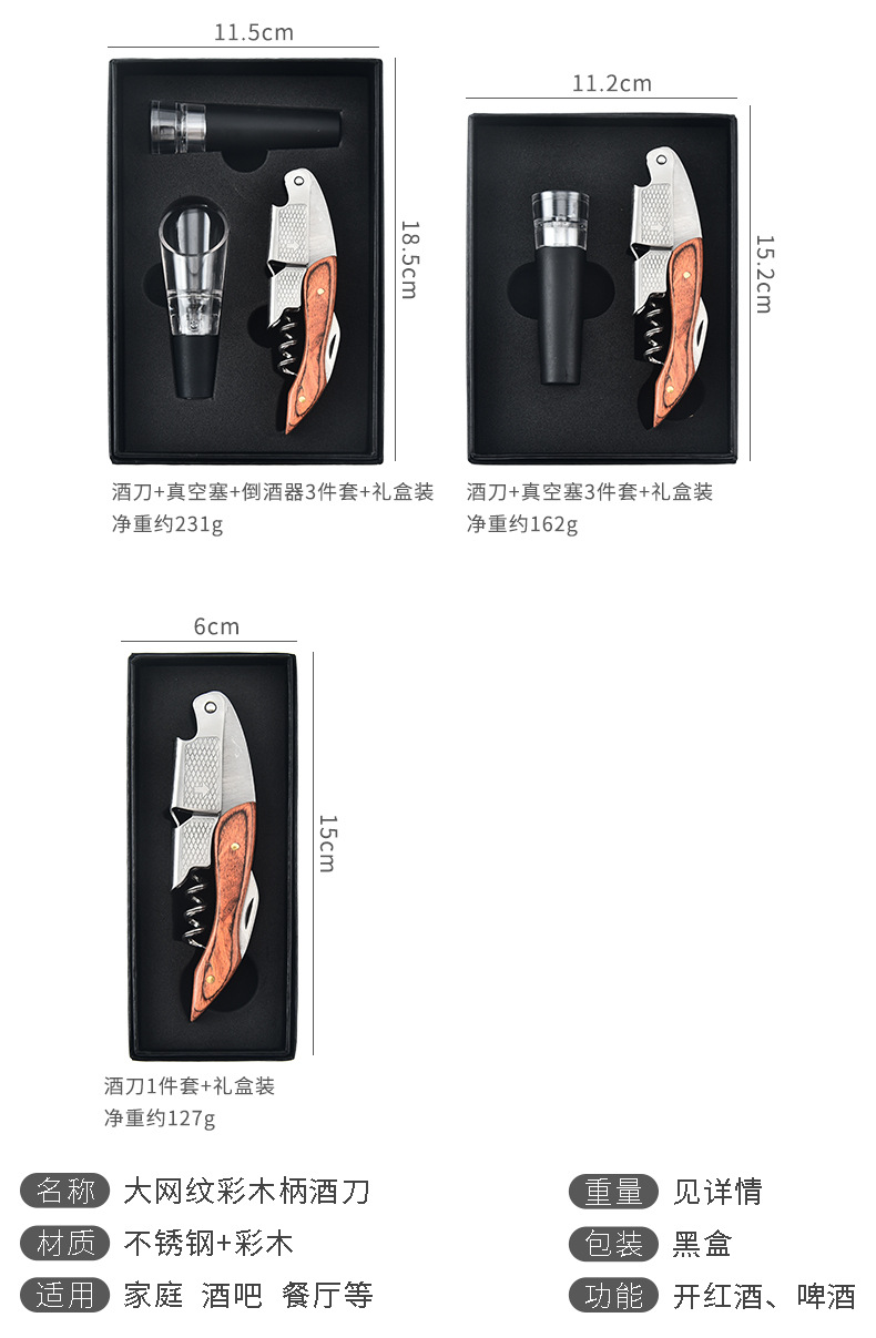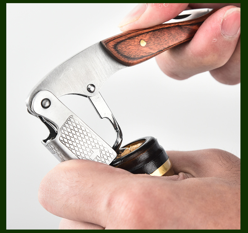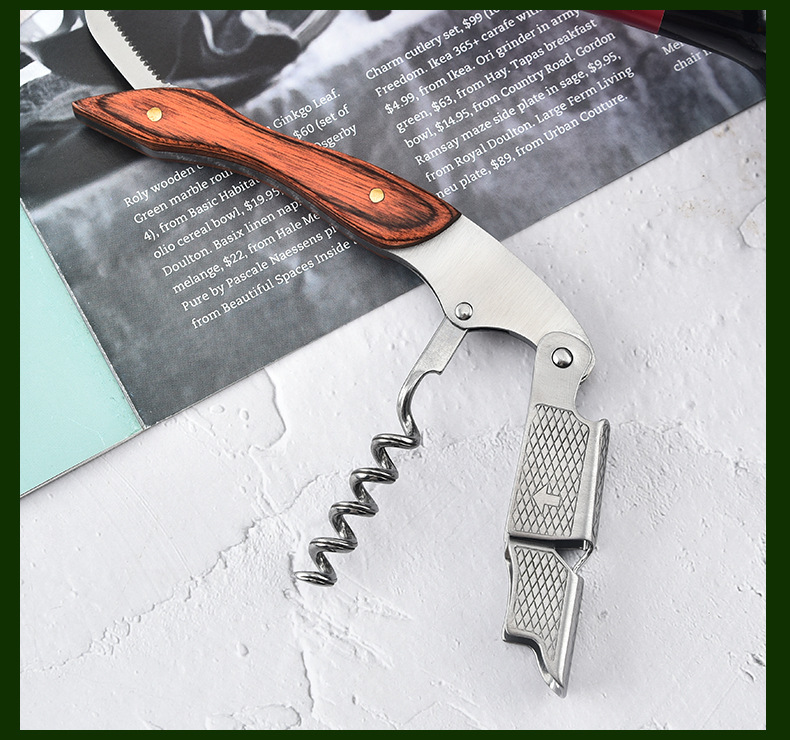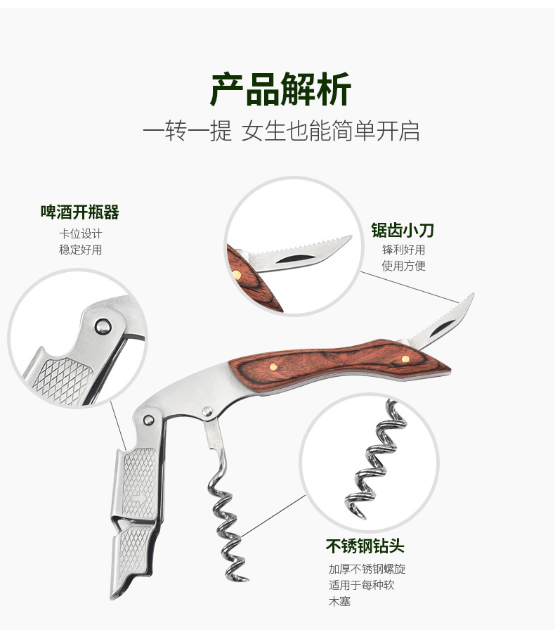 不锈钢开瓶器 多功能便捷式彩木柄开酒器海马刀葡萄酒红酒起子