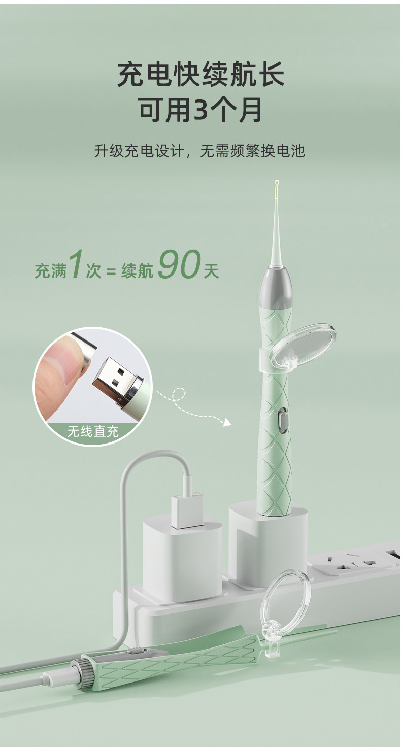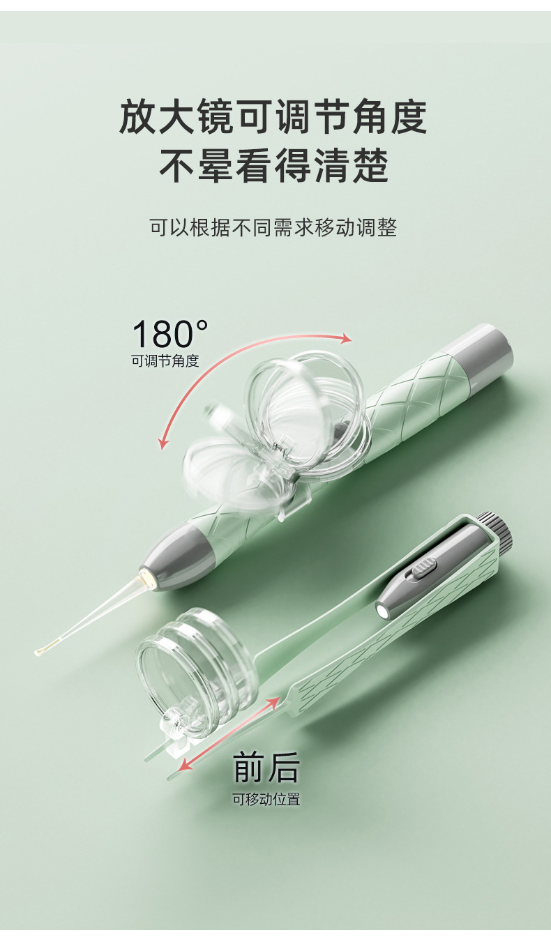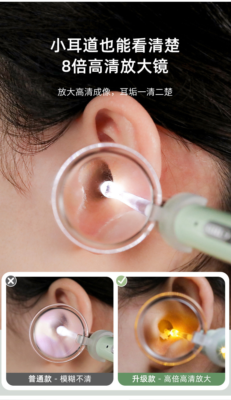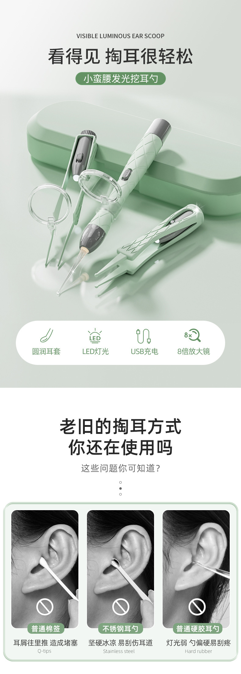 新款现货小蛮腰充电发光挖耳勺套装儿童掏扒耳屎带灯采耳工具套装
