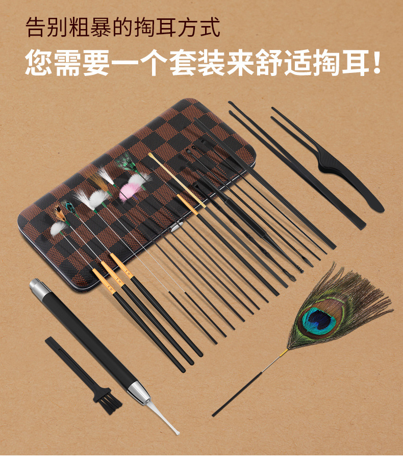 采耳工具套装,掏耳朵采耳孔雀羽毛,采耳工具套装,掏耳朵耳勺