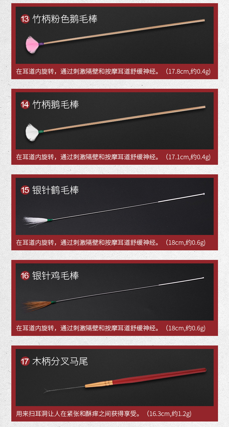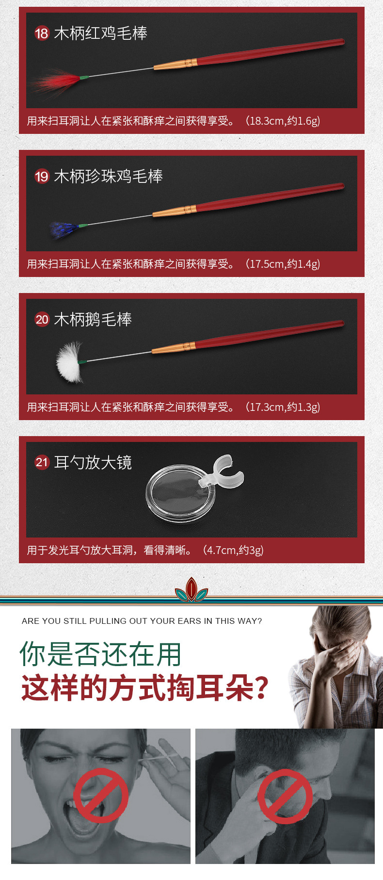 木盒装21件采耳工具,耳垢清洁鸡毛鹅毛棒,可视发光掏耳勺套装