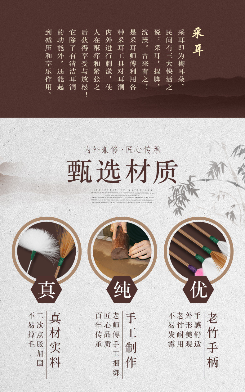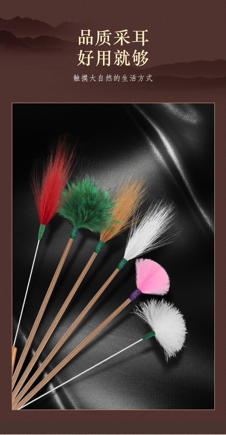 竹席卷采耳套装,挖耳勺,鹅毛棒,扒扣耳屎,儿童发光灯,采耳工具