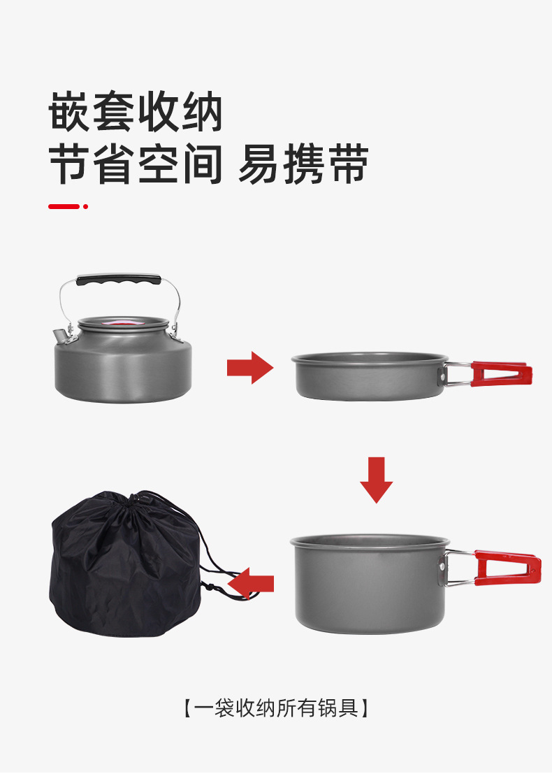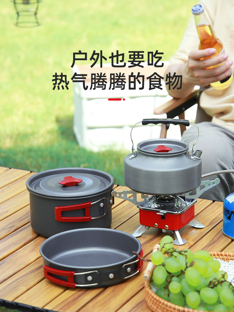户外套装锅具野营炊具水壶煎锅煮锅野外露营野炊装备用品厂家直供
