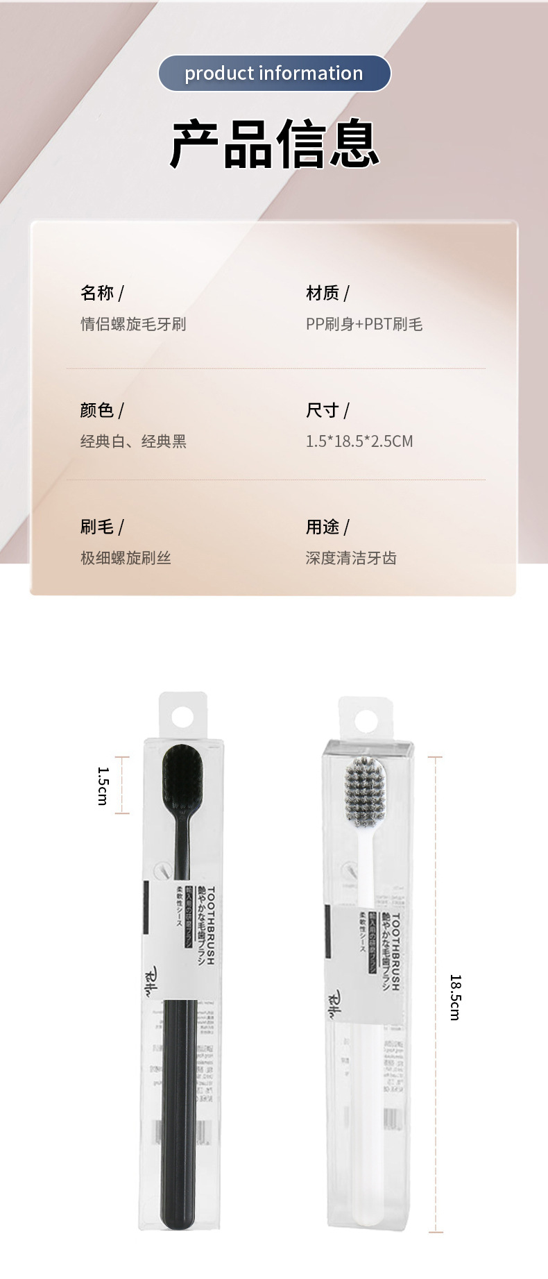 成人日式情侣黑白牙刷, 旅行单支装螺旋毛宽头软毛牙刷